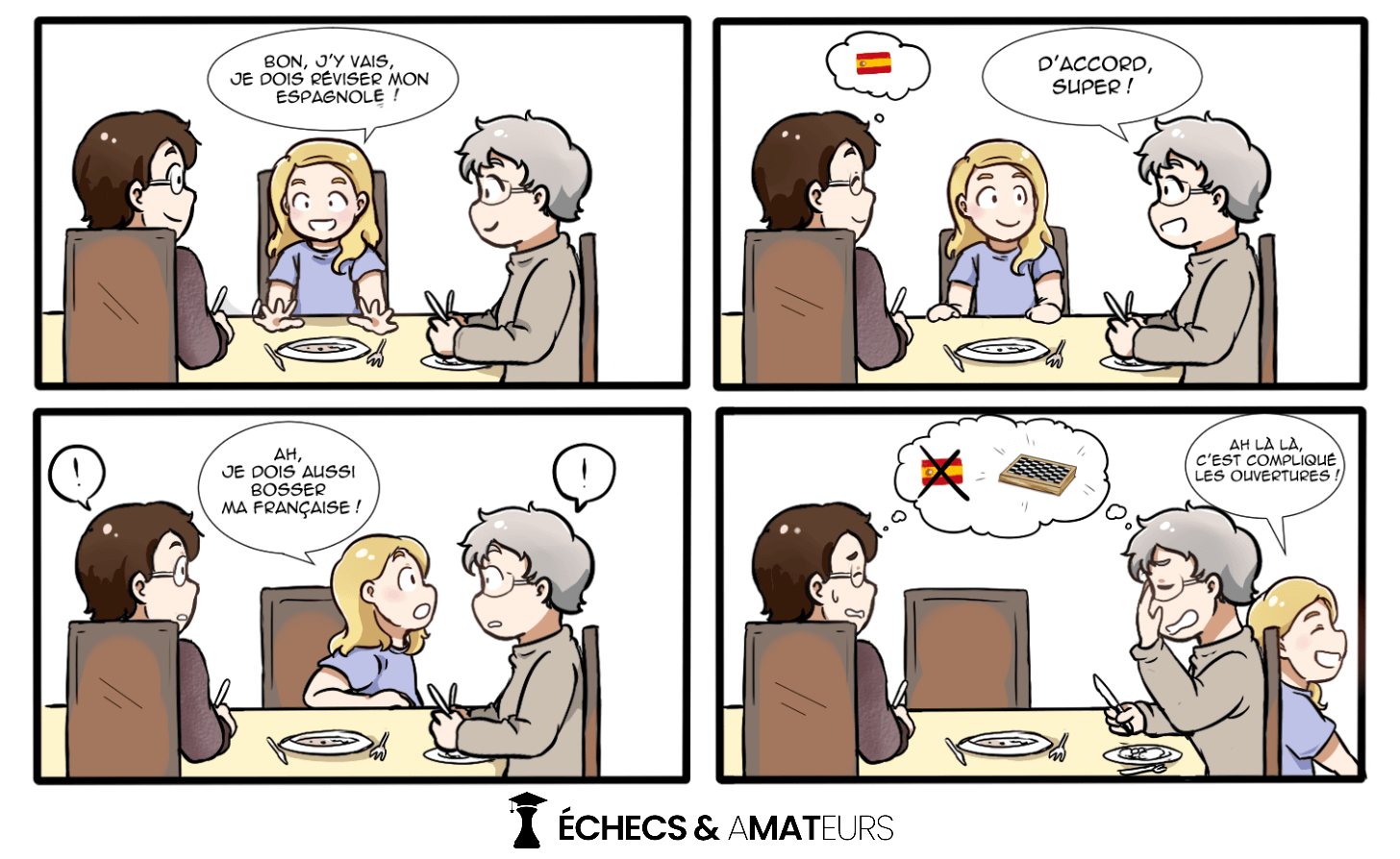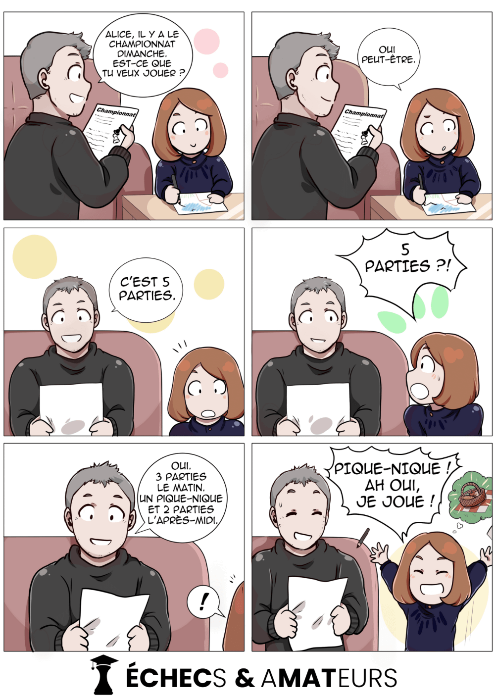 Entraîneurs, parents et accompagnateurs ont des rôles distincts très importants à jouer en compétition. En réalité, les parties démarrent loin de l'échiquier ! Le mental a un impact conséquent sur le résultat ! Alors, chers parents et accompagnateurs, soutenez les enfants, soyez fier d'eux, victoire ou défaite peu importe, assurez-vous de leur bonne santé et de leur plaisir de jouer. Cette aide leur sera précieuse. Le côté échiquéen, laissez-le aux entraîneurs dont c'est le métier 👍