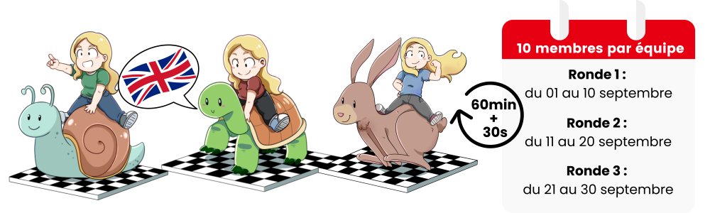💬 Contactez votre adversaire via la messagerie Lichess pour programmer votre partie. Parlez en anglais.